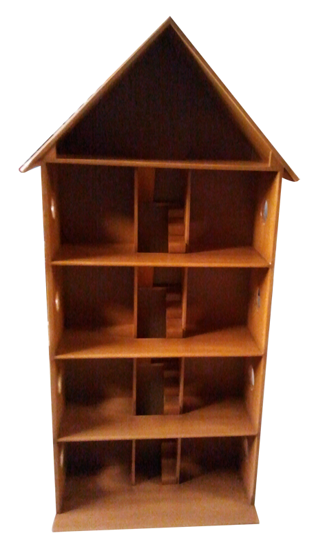 This solid Australian pine constructed wooden doll's house will bring hours of enjoyment to your children. It comprises 4 levels and an attic with a stair case from bottom to top levels. This is a great addition to any bedroom or playroom. The larger doll's house allows interactive play with friends. All levels have windows and stained to finish. Photo shows maple finish.