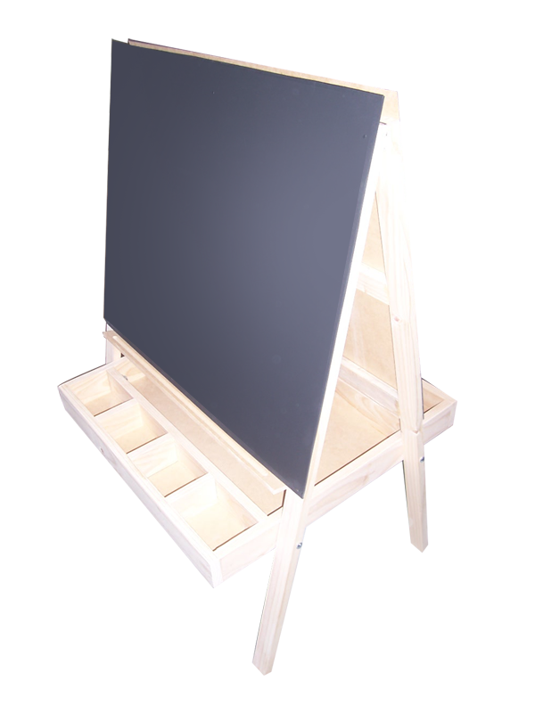 Made solid and built to last, this double sided chalkboard is a great way children to interact whilst drawing or simply a wonderful way to have two children completing the same task. Folds together for easy storage. The large storage area allows chalk and accessories to be kept close. Please feel free to contact us if you would like a quote on a different design or size.