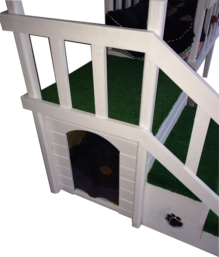 Treat your furry friend to a dog kennel of their dreams, consisting of a dog kennel, bed off the ground and even spots for their food and water. Shown finished in white (design not included in the price)